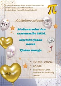 17.03.2026. | Događanje na županijskoj razini : Obilježavanje Međunarodnog dana matematike, Dana broja π, Svjetskog tjedna novca i Tjedna mozga.
